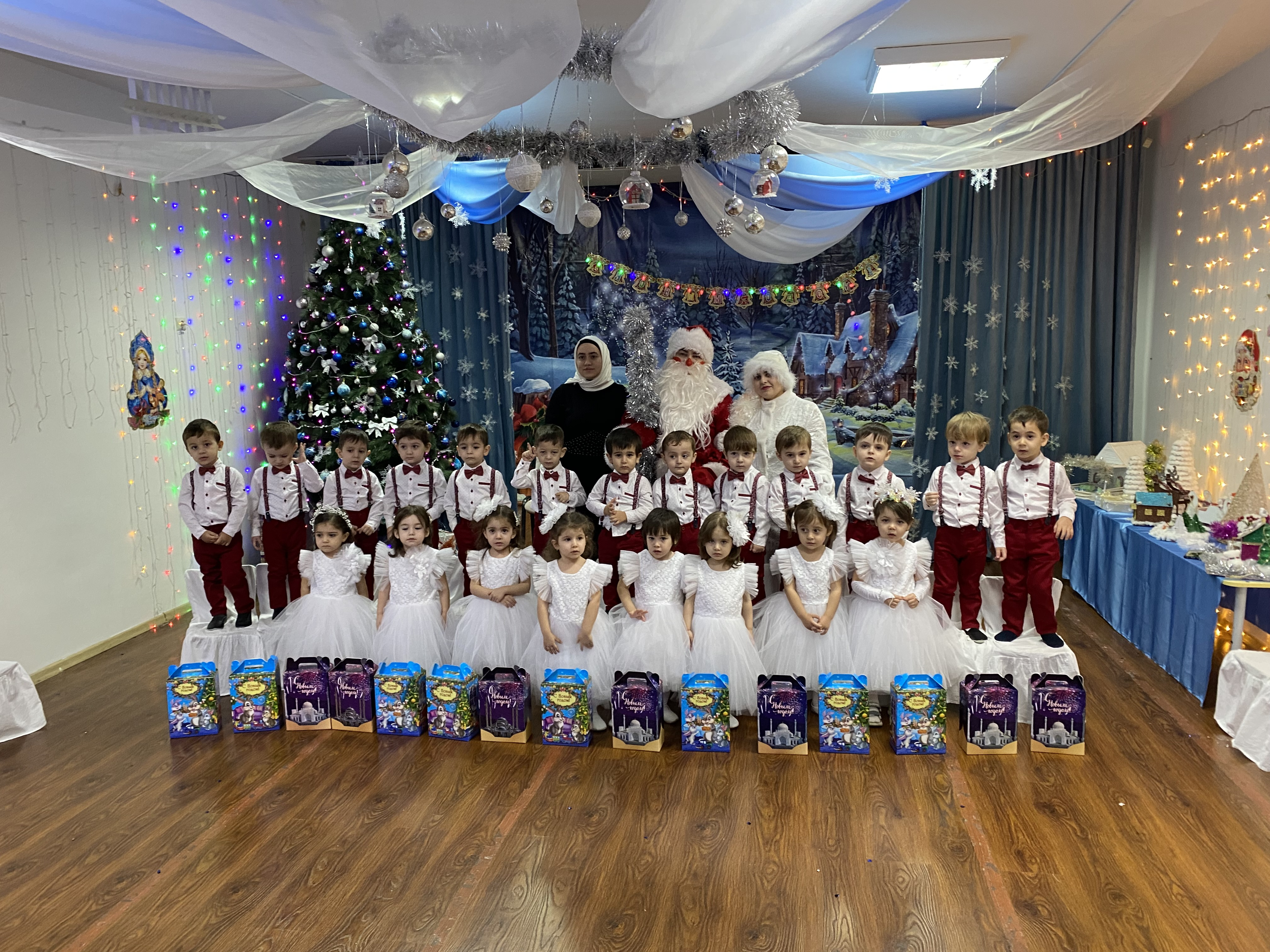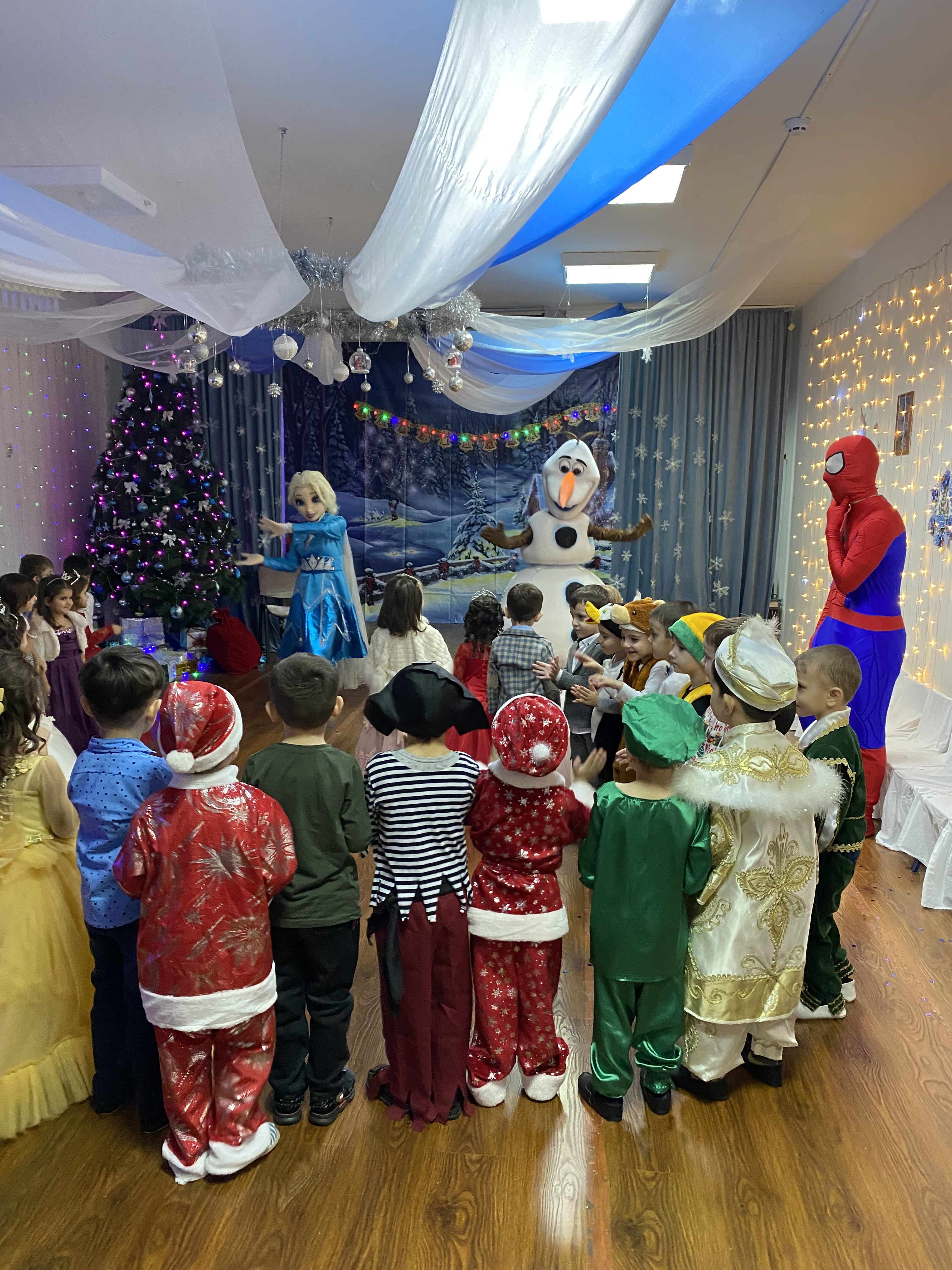 С появлением Деда Мороза начался настоящий праздник с песнями и танцами, хороводами вокруг ёлки. После представления дети читали стихи Деду Морозу и Снегурочке, фотографировались с персонажами, получали новогодние подарки.