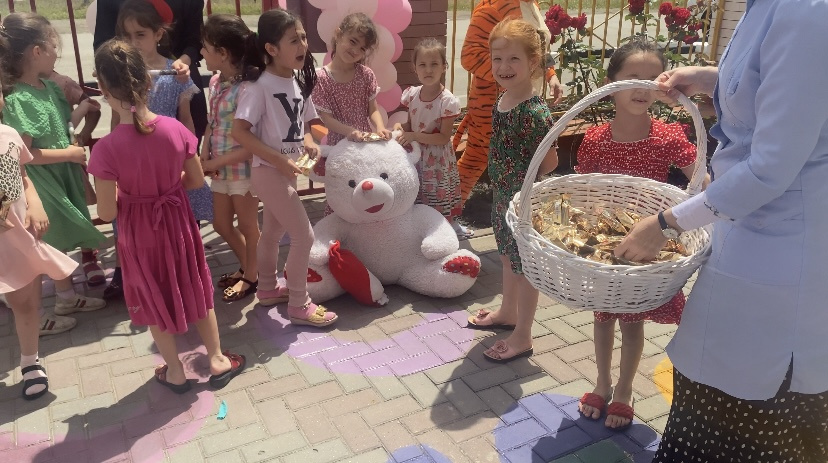 К детям пришли в гости веселые клоуны, которые с ними пели детские песни, играли в весёлые игры и эстафеты и подарили детям хорошее настроение. Было приятно видеть радостные детские лица и слышать весёлый детский смех.