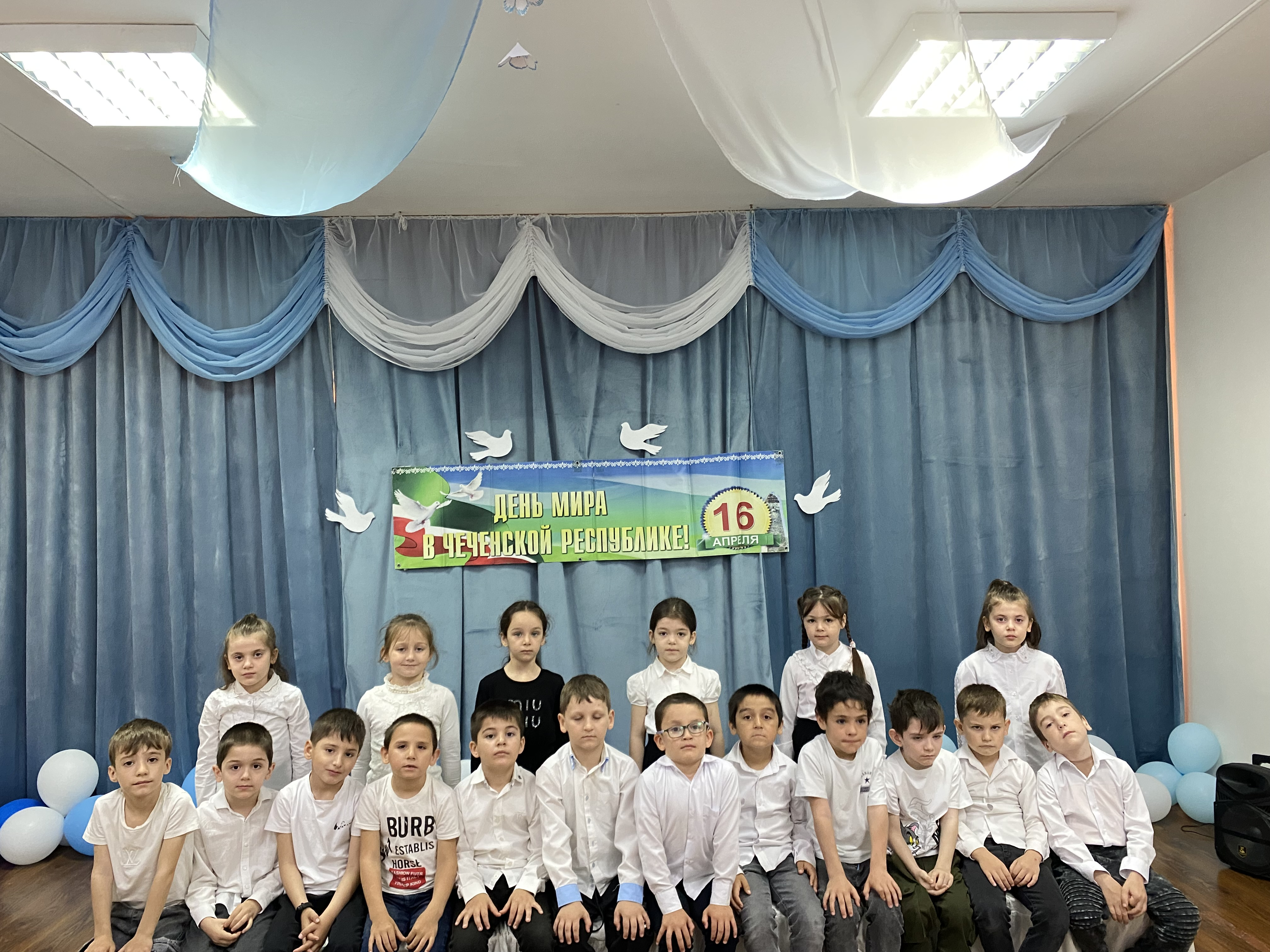 08.04.2024г был оформлен фасад баннерам ко «Дню Мира ЧР». В группах были оформлены информационные уголки по данной теме. В группах ДОУ были проведены беседы с воспитанниками на темы мира, чтение художественных произведений, просмотр фильмов, слайдов. Дети слушали песни, читали стихотворения о мире, изготовили из бумаги голубей. Во всех группах на дневной прогулке были проведены спортивные игры и развлечения. Дети получили положительные эмоции, заряд бодрости от проведенных мероприятий.