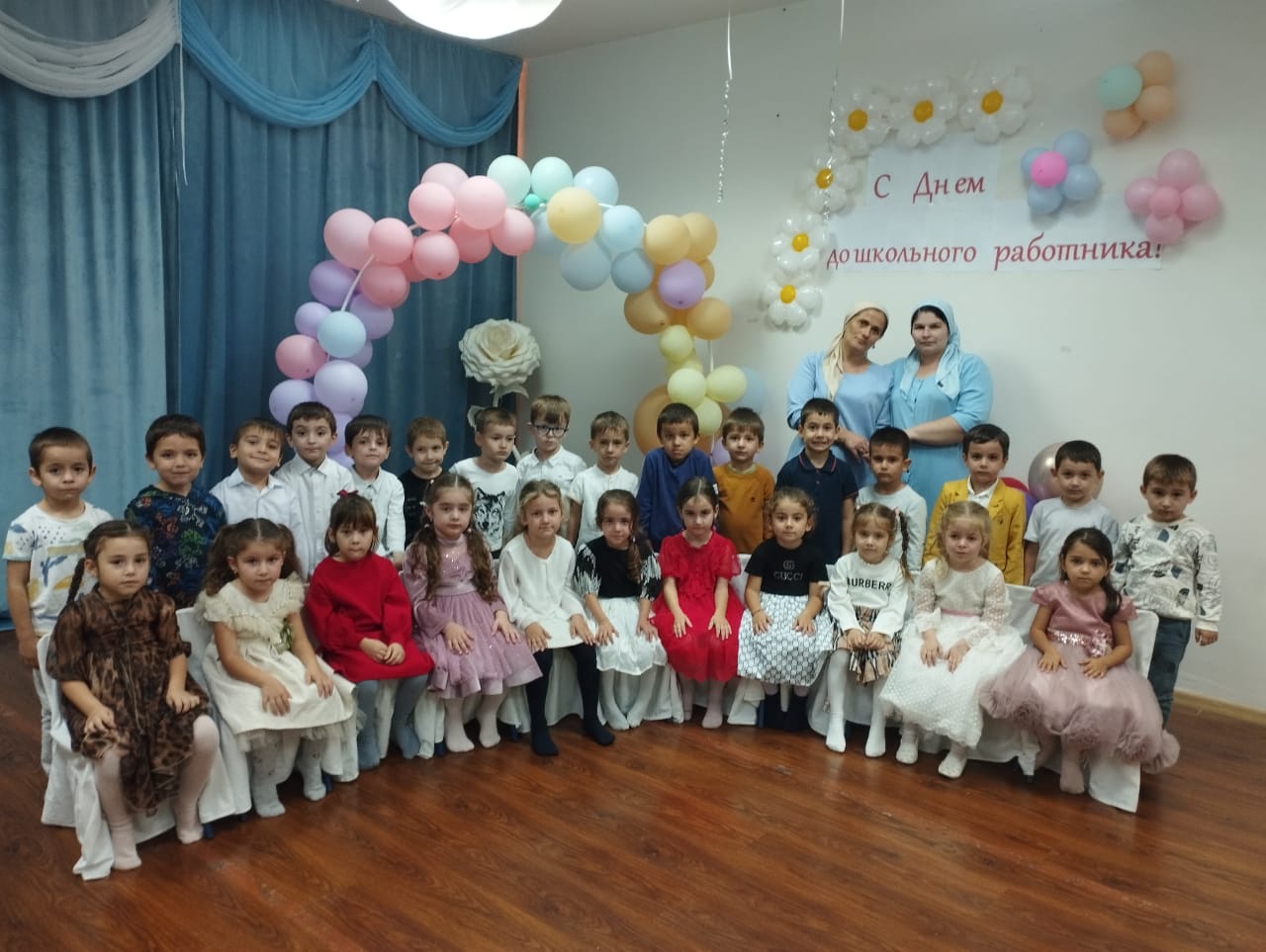 С самого раннего утра 27 сентября 2024г., в День работников дошкольного образования, были цветы, звучали тёплые слова благодарности и поздравлений от родителей в адрес всех работников нашего детского сада. И конечно, весь коллектив детского сада поздравили воспитанники. Они не забыли никого, рассказывали стишки о любимых воспитателях и нянях, о заведующей, о поваре и медсестре и других работниках садика. Для работников детского сада дети исполнили несколько песен.